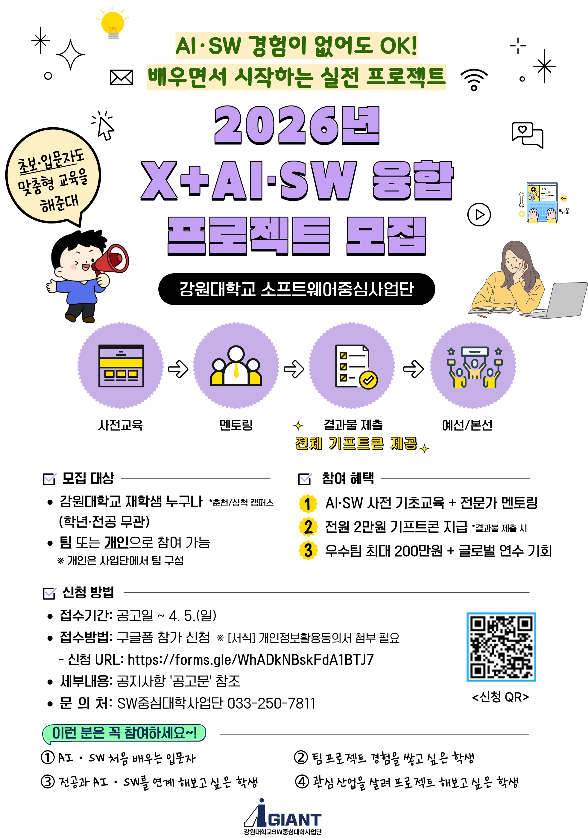 사. 참가혜택 : AI·SW 기초 교육, 전문가 멘토링 지원 및 수상자 글로벌 프로젝트 참여